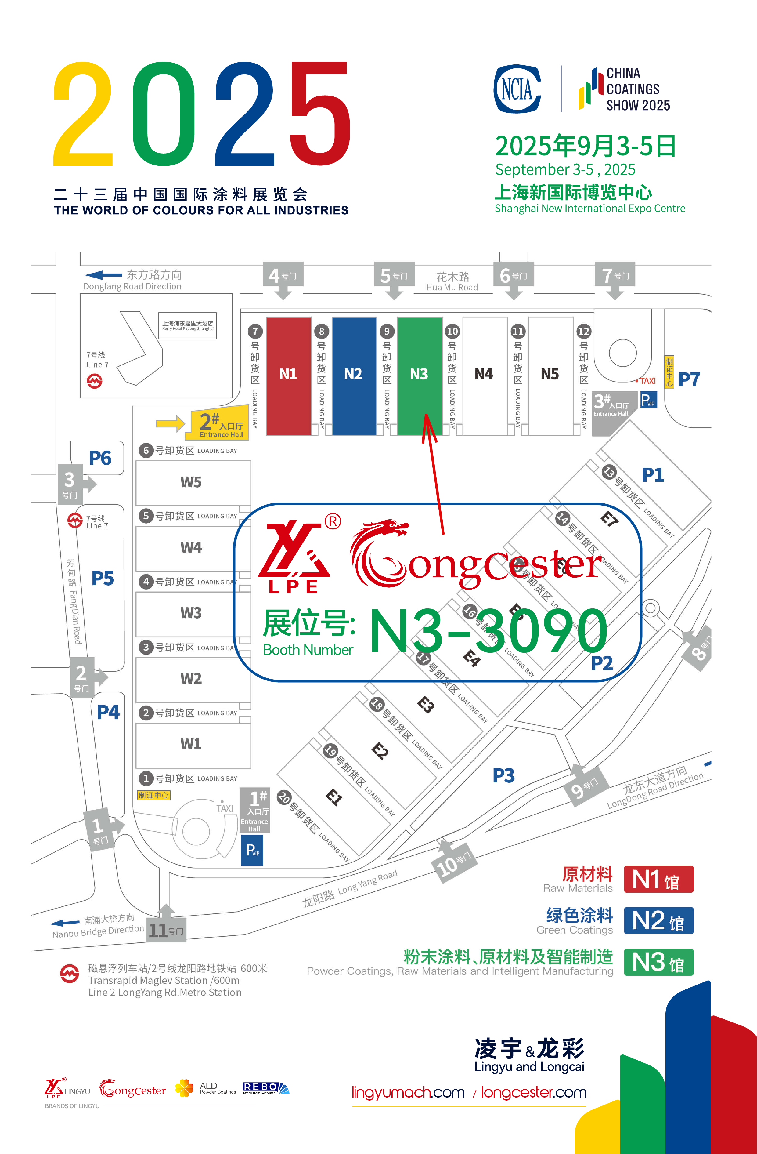 作為中國粉末涂料加工設備及原材料領域的代表性企業,凌宇機械與龍彩新材料將亮相本屆展會,展位號N3-3090